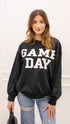 Your new game day essential! This cozy crew neck sweatshirt features a bold GAME DAY graphic across the front and a relaxed, boyfriend-style fit for that effortless, laid-back look. Made with super soft, fleecey fabric, it keeps you warm and comfortable all day long—whether you’re cheering from the stands, hosting at home, or running errands in style.