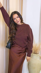 Timeless, cozy, and effortlessly stylish—this chocolate brown knit pullover is the ultimate wardrobe staple. The rich neutral tone makes it easy to style, while the soft knit keeps you warm and comfortable through any season. Designed with dropped shoulders for a relaxed look and a classic crew neckline for versatility, this sweater can go from casual to polished with zero effort.