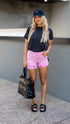 WILLOW DISTRESSED DENIM SHORTS (PINK)(BLACK)
